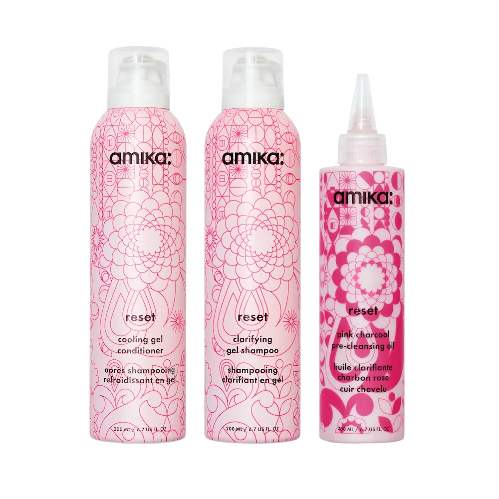 detox set reset clarifying gel shampoo, cooling gel conditioner + pink charcoal scalp cleansing oil